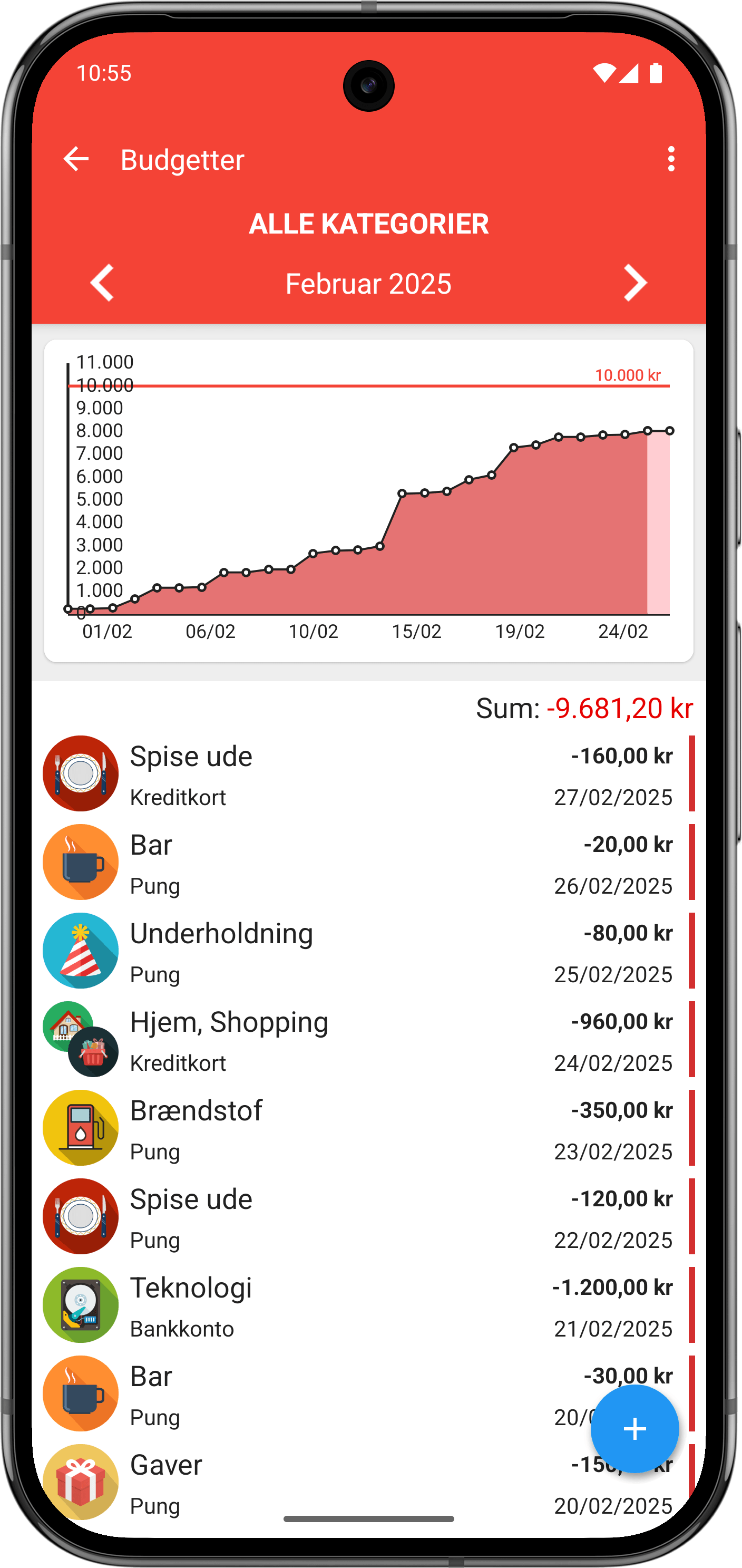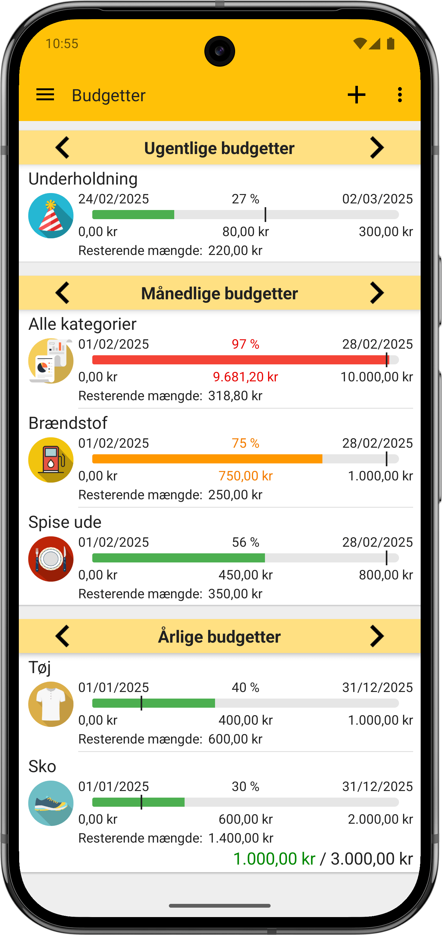 Sæt forbrugsgrænser for forskellige kategorier, spor dine fremskridt i realtid og modtag advarsler, før du bruger for meget.
