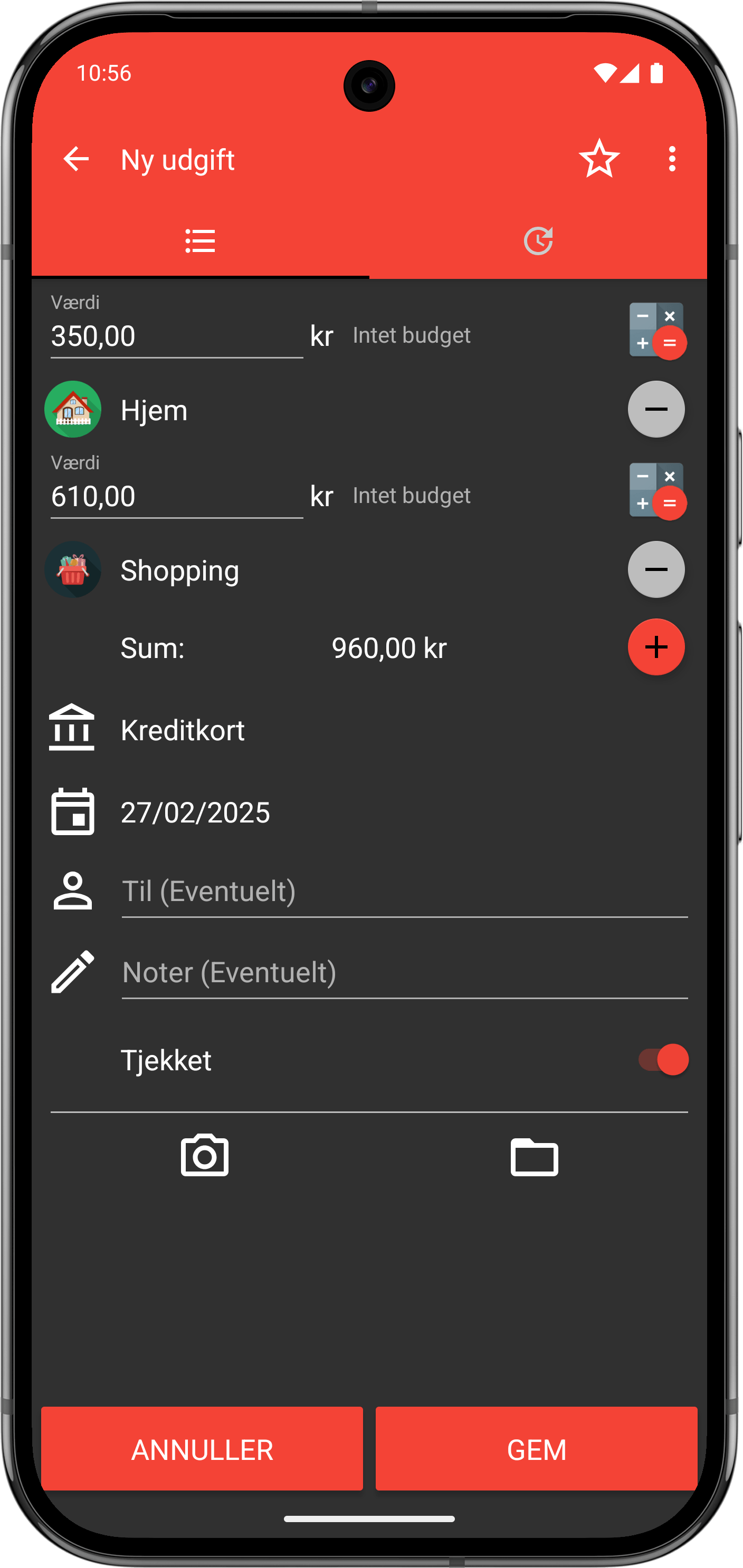 Med Fast Budget kan du klassificere dine udgifter med ubegrænsede brugerdefinerede kategorier og underkategorier.