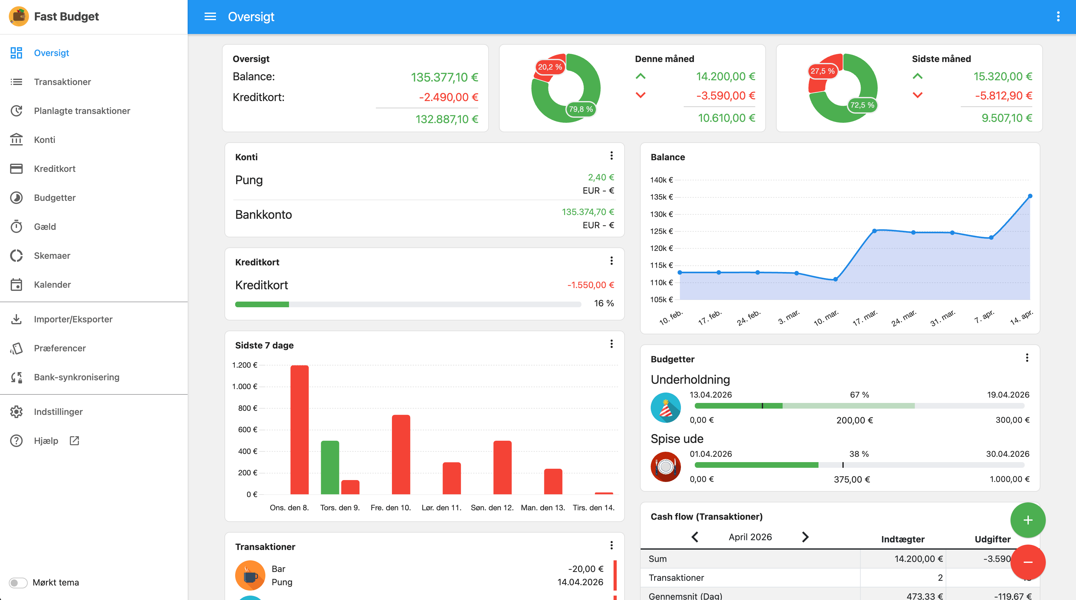 Fast Budget tilbyder et brugerdefinerbart overblik over indtægter, udgifter og budgetter på en enkelt skærm. Vores intuitive rapporter og grafer gør det nemt for dig at forstå dine forbrugsvaner og identificere områder, der kan forbedres.