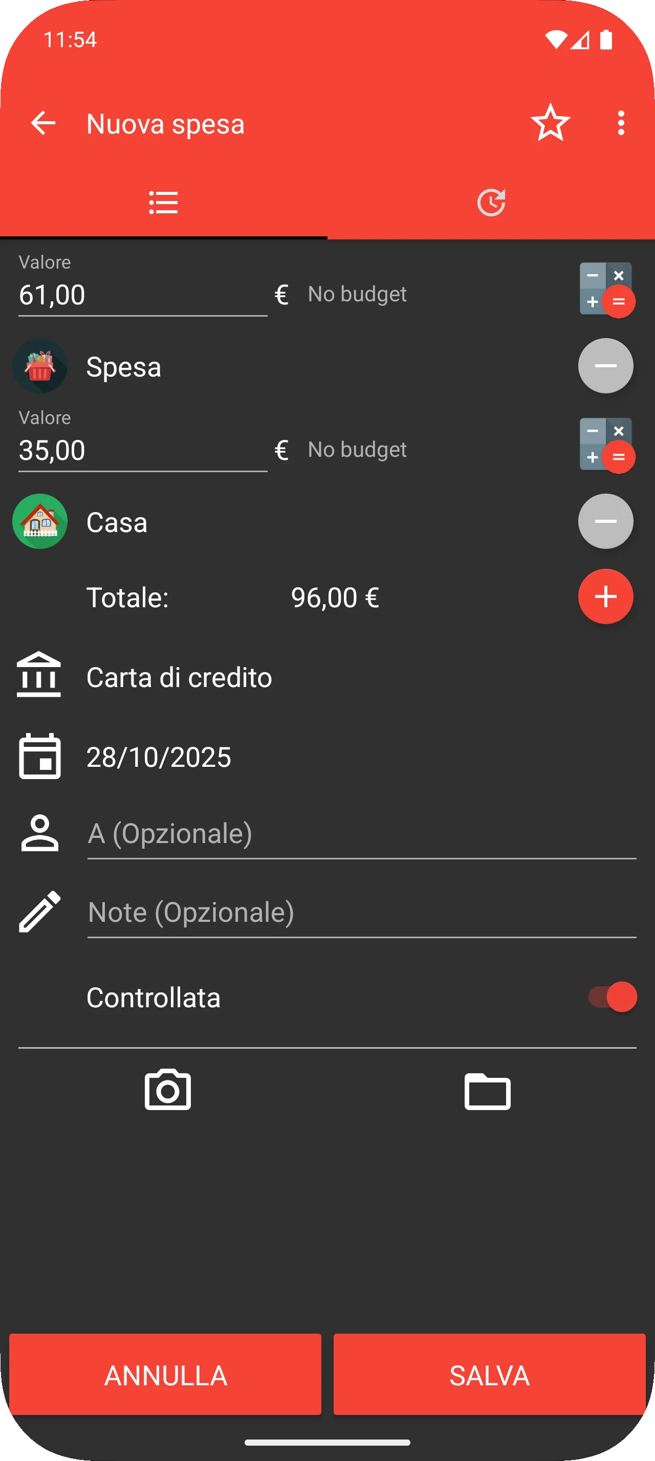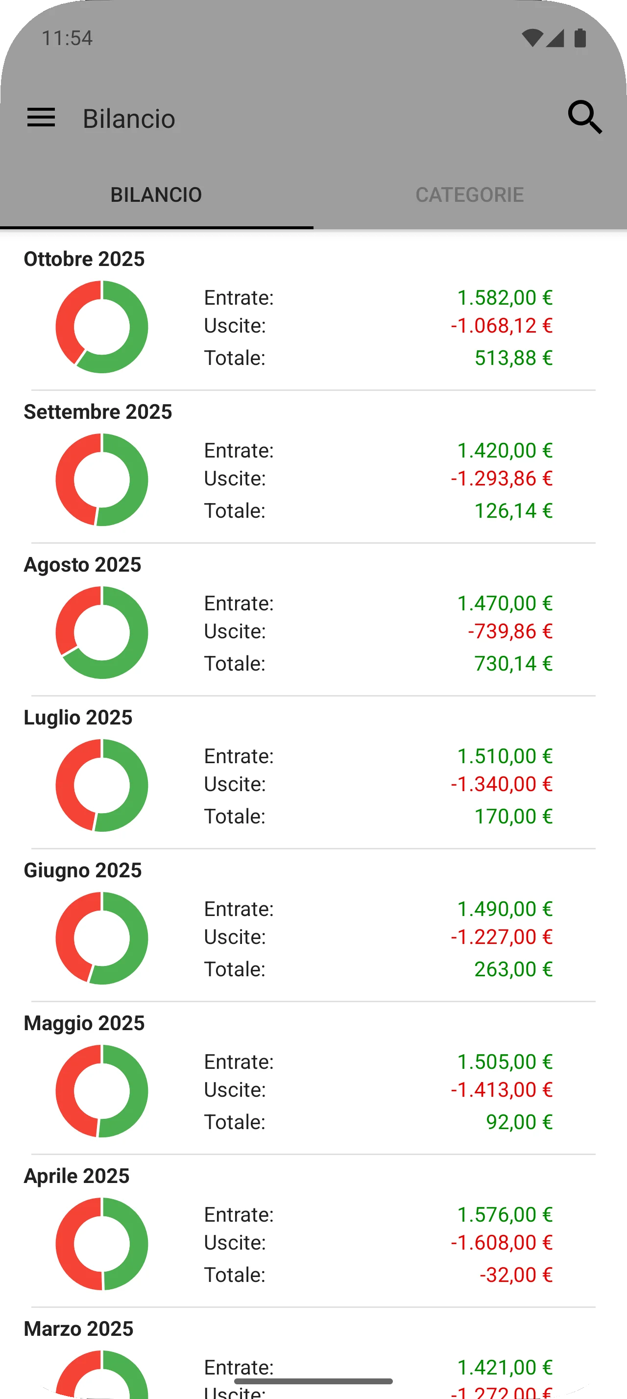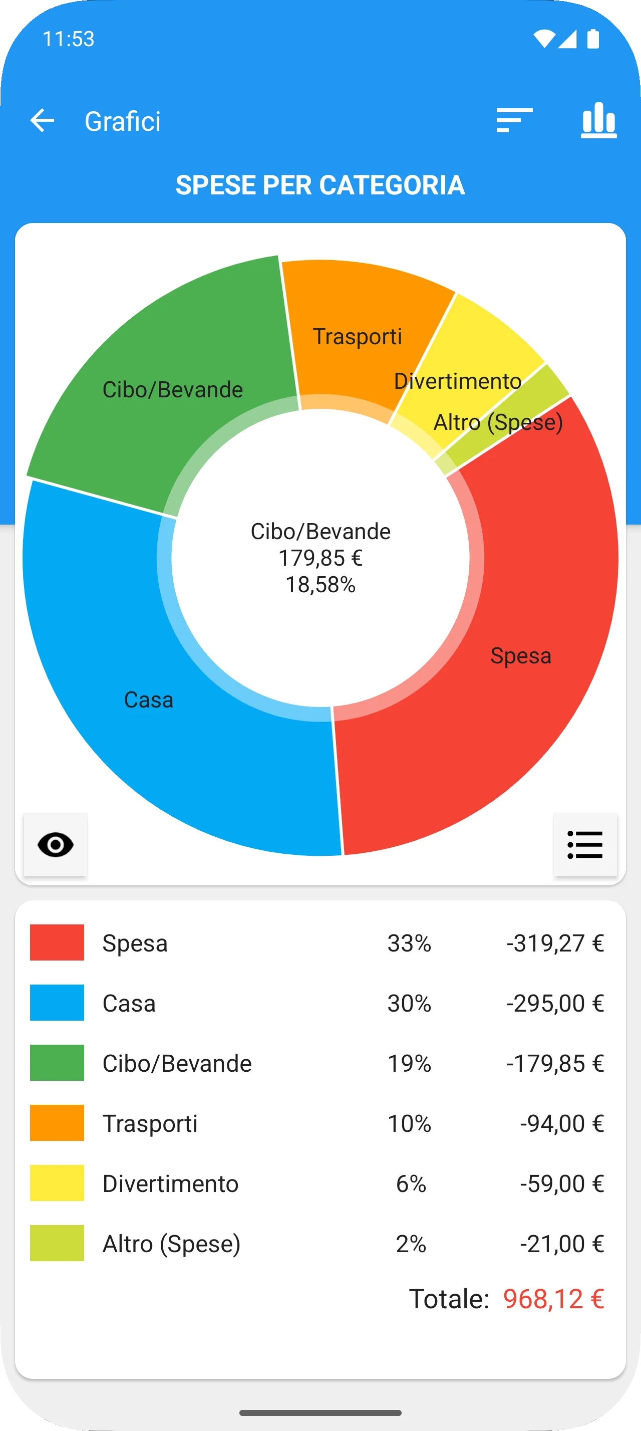 Con Fast Budget puoi classificare le tue spese con categorie e sottocategorie personalizzate illimitate.