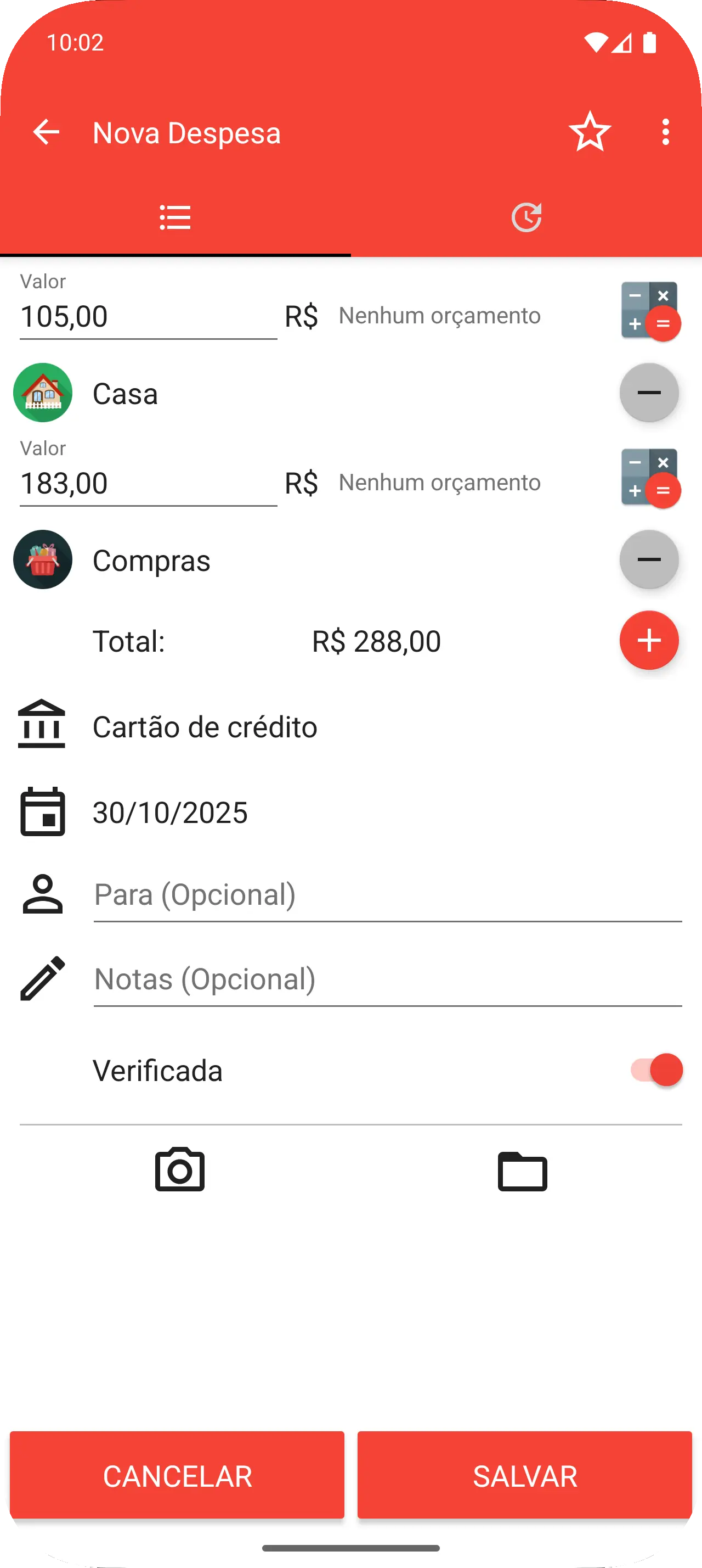 O valor do orçamento é calculado automaticamente a partir das despesas existentes com a mesma categoria.